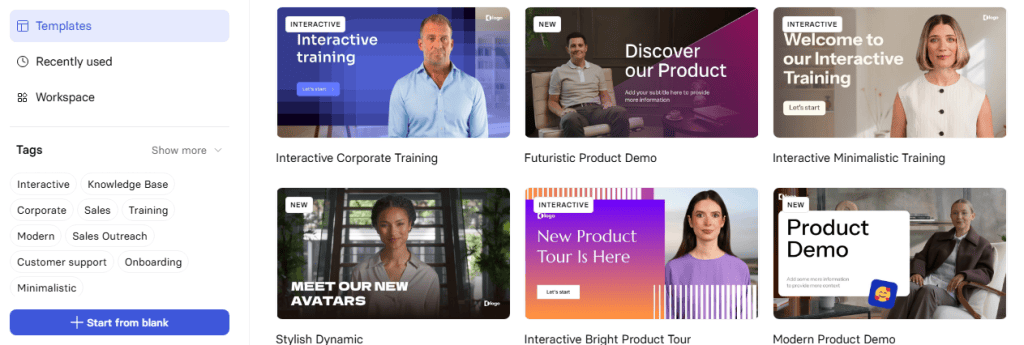 It also has more than 250 ready-made templates ranging from corporate training and onboarding to marketing campaigns and customer tutorials. These templates give you a strong starting point while saving time on design and formatting.